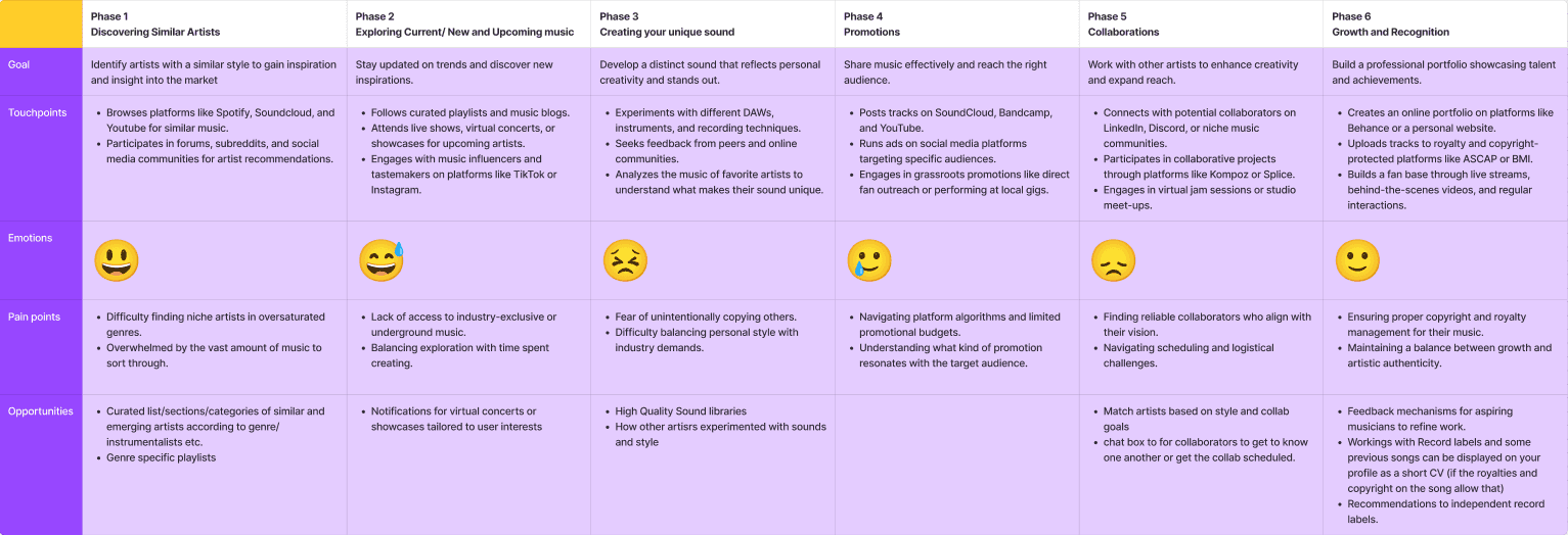 Through user interviews, industry mapping, and journey analysis, we explored how producers discover music, collaborate, and share work.